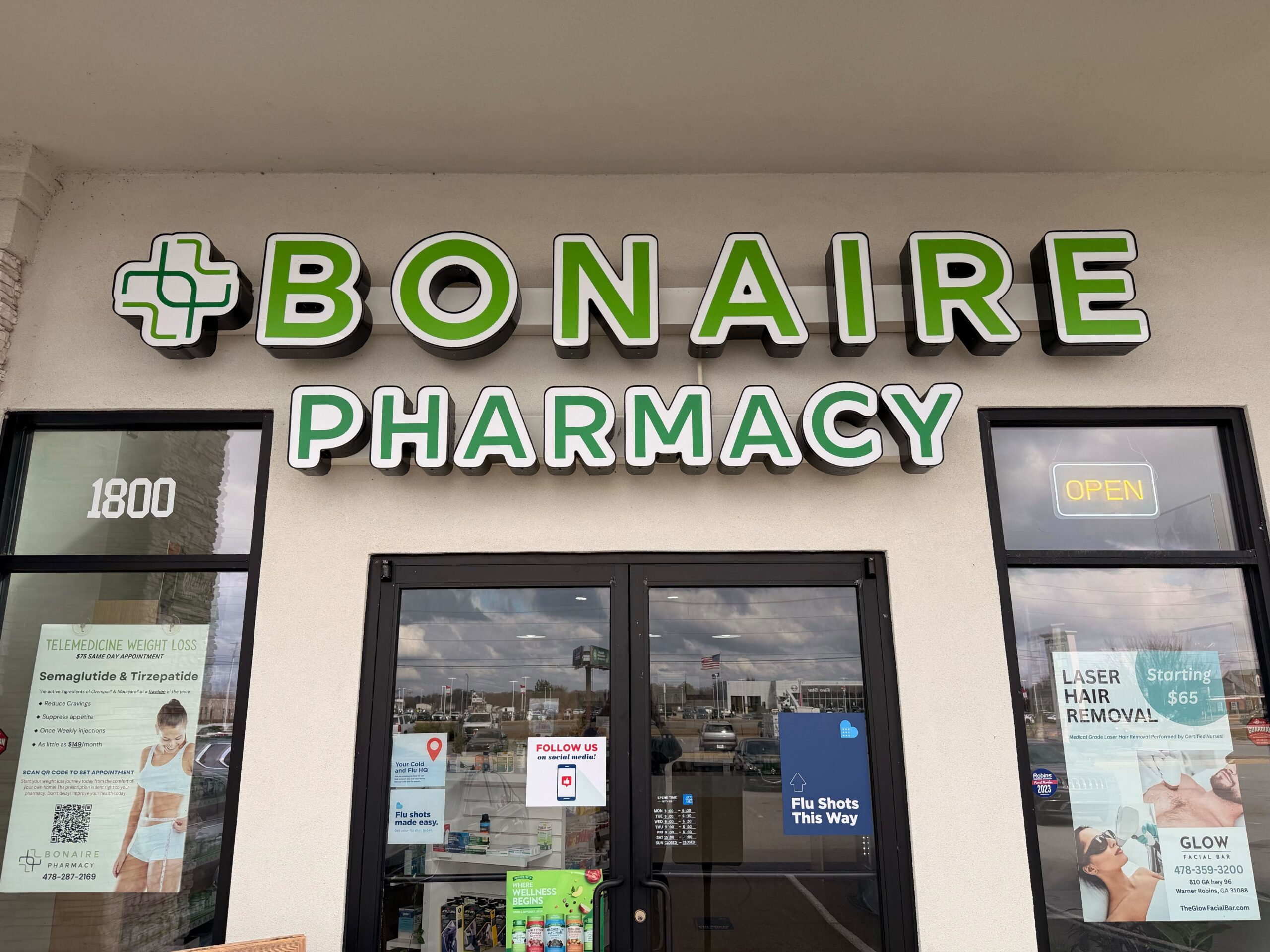 Locally owned pharmacy serving Warner Robins, Bonaire, and Kathleen! We offer free home delivery and free medication packaging (Pill-pack). Our pharmacy accepts all insurance.
